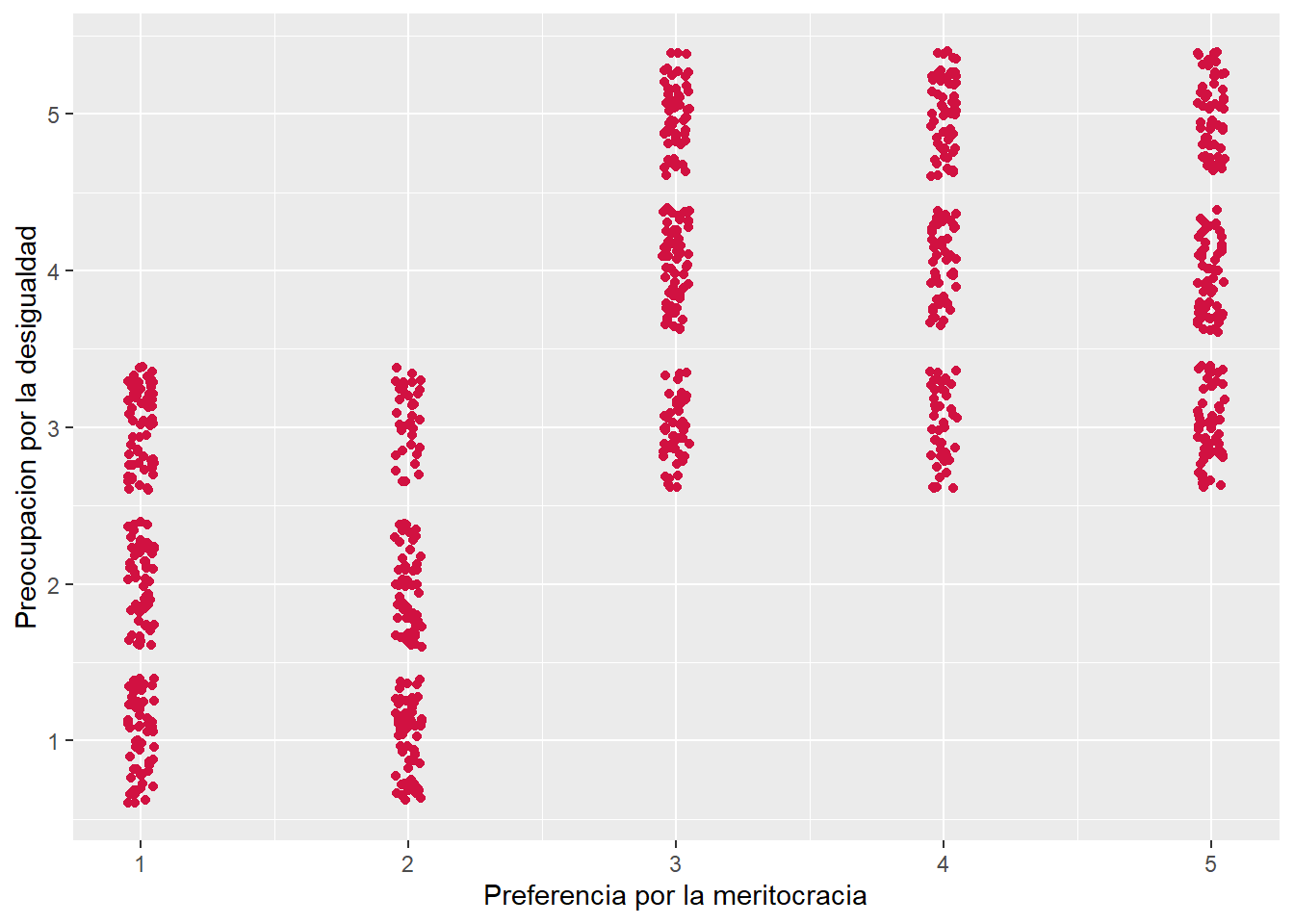 load(url("https://github.com/cursos-metodos-facso/datos-ejemplos/raw/refs/heads/main/dataset5.RData"))Pregunta 1. ¿En qué medida se relacionan la preocupación por la desigualdad de las personas con su preferencia por la meritocracia?